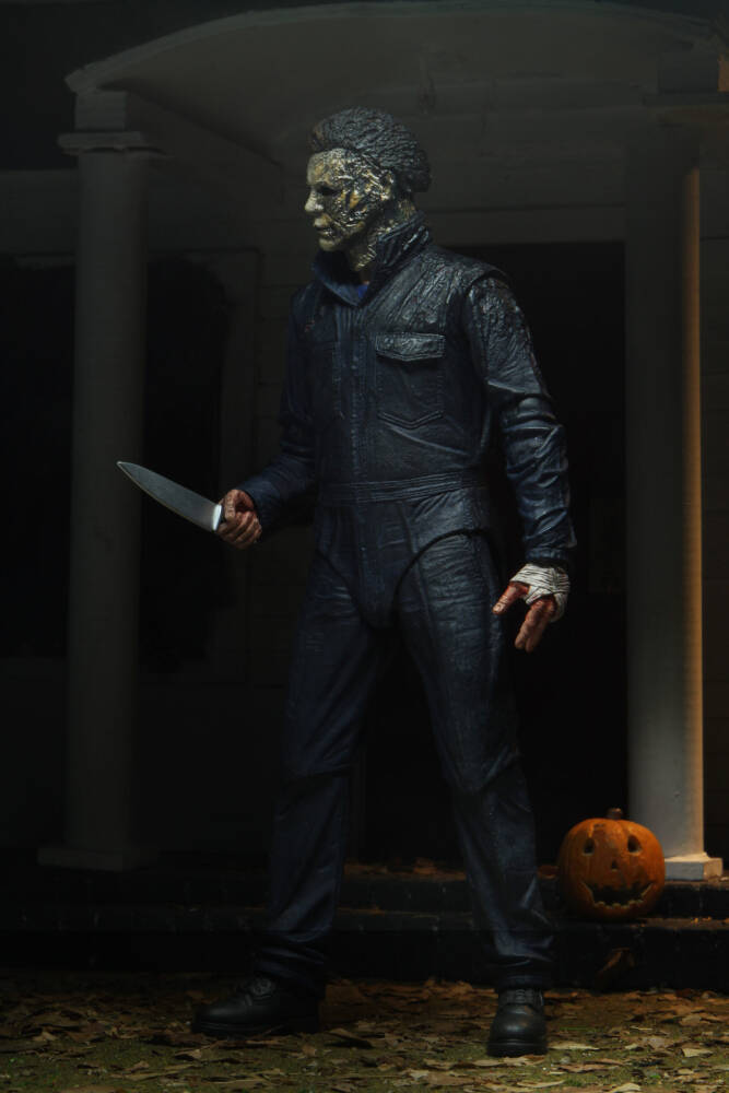“Halloween Kills” filmindeki Michael Myers’ın görünümü detaylı olarak yansıtılmıştır. Aşınmış maskesi, kirli tulum görünümü ve film atmosferine sadık renk geçişleriyle güçlü bir sahne hissi sunar.