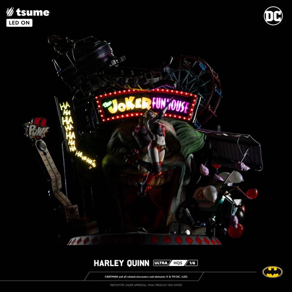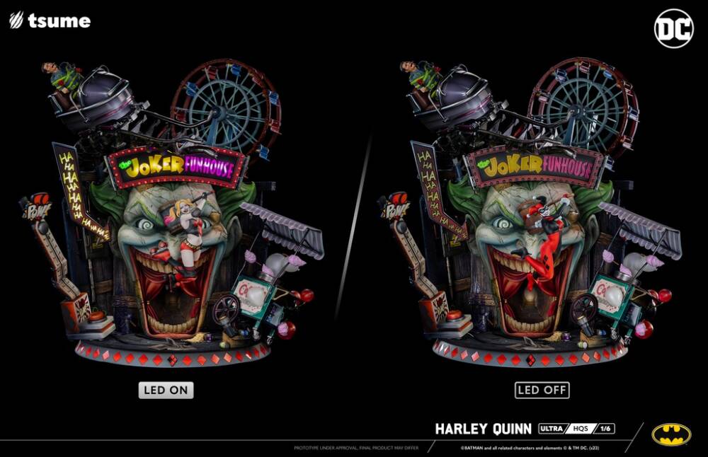 Tasarım: Harley Quinn'in "Suicide Squad" ve klasik çizgi roman versiyonlarından esinlenilerek tasarlanmıştır. Heykel, entegre motorlu sistem, LED aydınlatmalar ve ses efektleriyle donatılmıştır. Ayrıca, 2 değiştirilebilir büst ve ek bir taban ile birlikte gelir