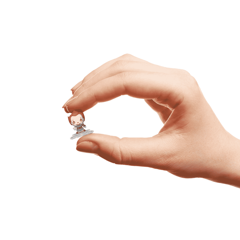 Bu Bitty Box, “IT” evreninden Pennywise’ın korkutucu lair'ini akrilik bir vitrine küçük ölçekli sahne olarak taşıyor. Kapak açıldığında iç sahne ve detaylar ortaya çıkıyor; kabin, ateşli şömine havası ve ürkütücü atmosfer figüre sinmiş halde sergileniyor.