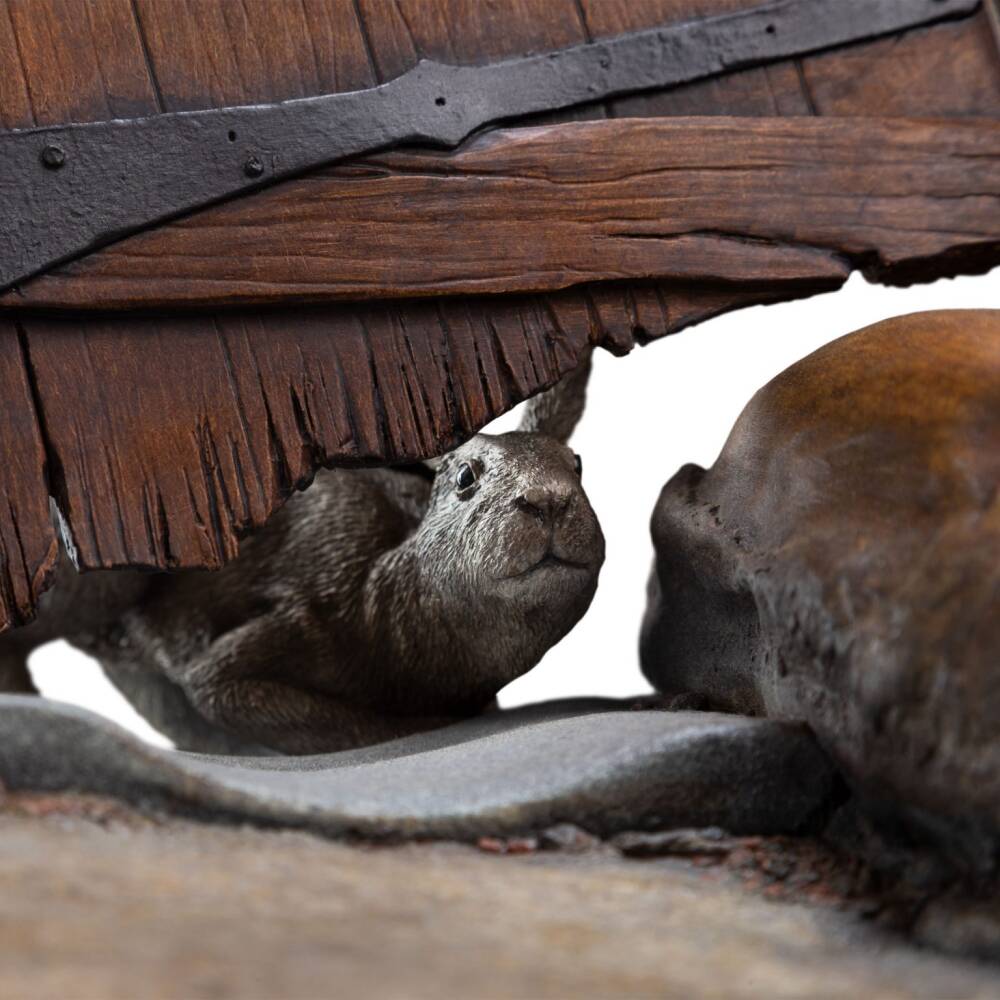 Weta – Radagast in Rhosgobel, 1:6 ölçekte 59 × 42 × 41 cm boyutları ve 19.3 kg ağırlığıyla hikâye anlatımı güçlü, vitrin odaklı bir koleksiyon eseridir. Zengin el boyaması detayları ve 800 adetlik sınırlı üretimiyle Orta Dünya vitrinlerine anıtsal bir merkez parçası kazandırır.