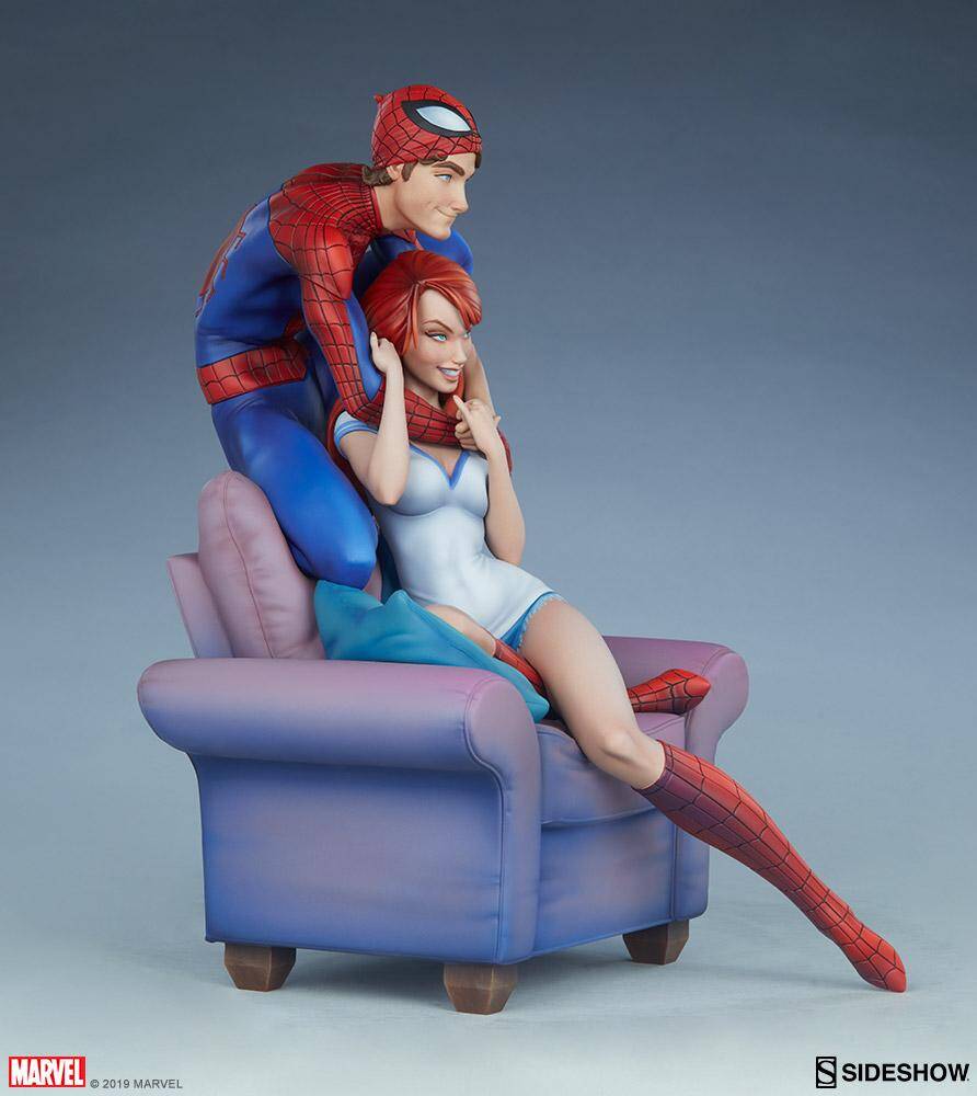 Marvel "Renew Your Vows" #1 kapak ortamından esinlenen bu maquette, Spider-Man & Mary Jane’i şehir loft’unun konforlu bir koltuğunda birlikteyken sıcak, romantik bir sahneyle tasvir eder. Web dokusu, PJ'in çorapları ve kostüm detayları büyük özenle modellenmiştir.