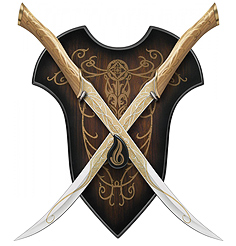 Legolas Greenleaf’in The Hobbit veya LOTR film serilerinde kullandığı savaş bıçaklarının ikili takımı, film seti prop’larına sadık kalınarak yeniden üretilmiştir. Elven motifli süslemelerle zarif ve zararsız ama etkileyici bir denge yakalanmıştır.